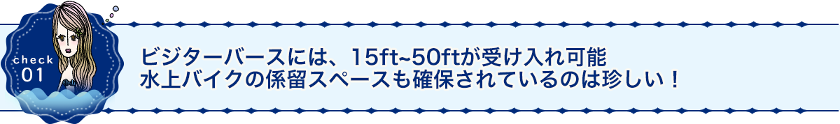 - ビジターバースは、ボートと水上バイクの受け入れが可能。HPから予約ができる!
