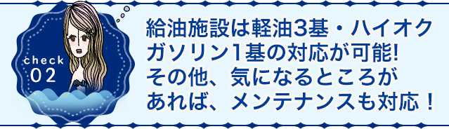 - メンバーはもちろん、ビジターも燃料の補給(ハイオク・軽油)が可能。