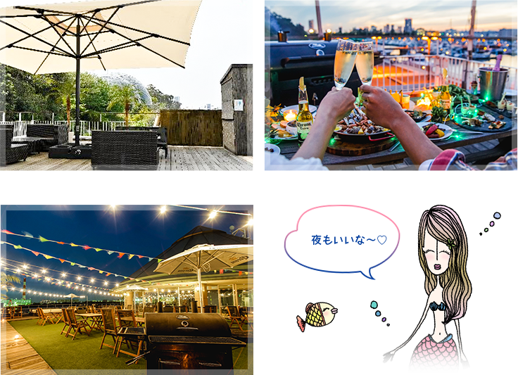 マリーナを目の前に眺められるテラスでは本格BBQが手ぶらで楽しめる!