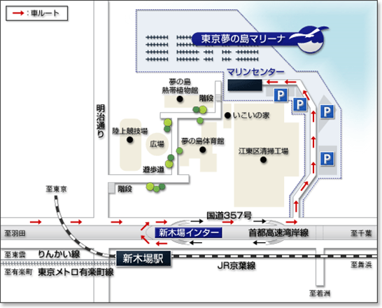 都心から車で首都高「新木場インター」を下りてすぐの場所にある