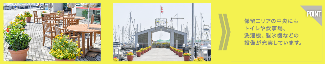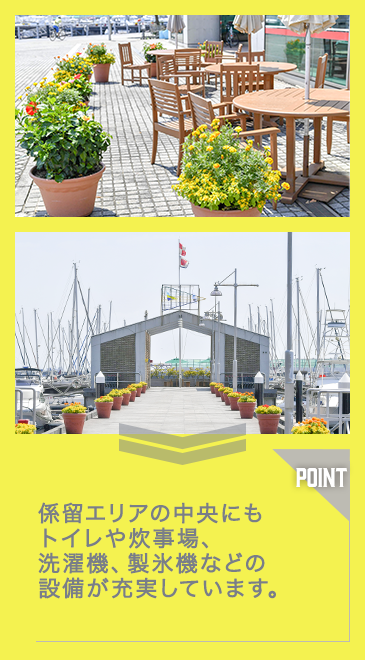 20隻(30フィート換算、横づけ)のビジター桟橋が用意されています。