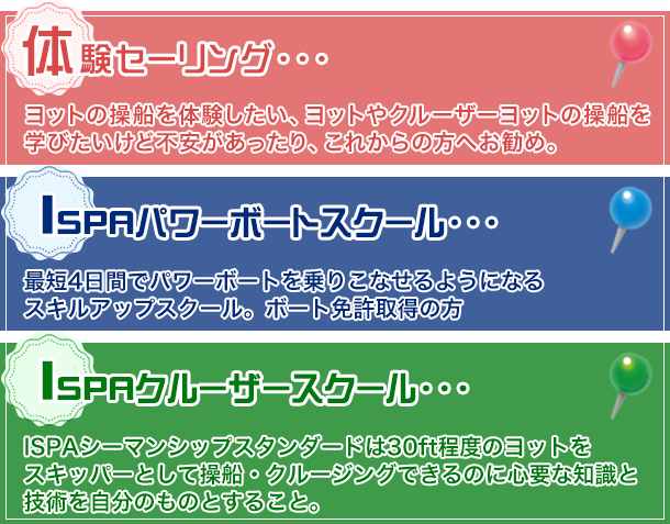 ▶ISPAクルーザースクール:https://www.ybmarina.com/school/pdf/ispa_cruiser.pdf