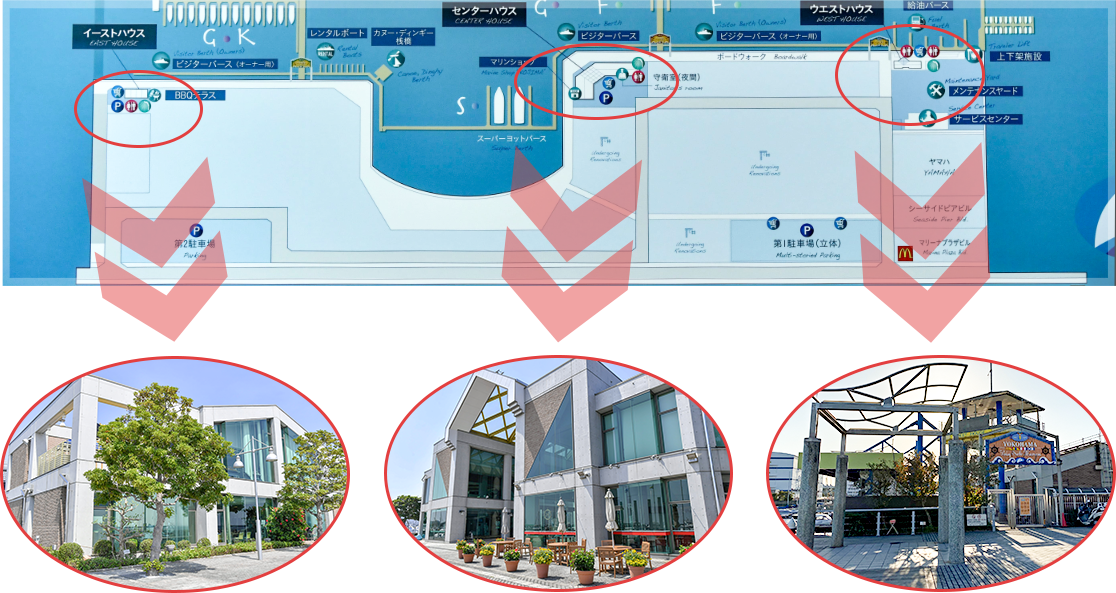 マリーナの敷地内には三つのハウス!