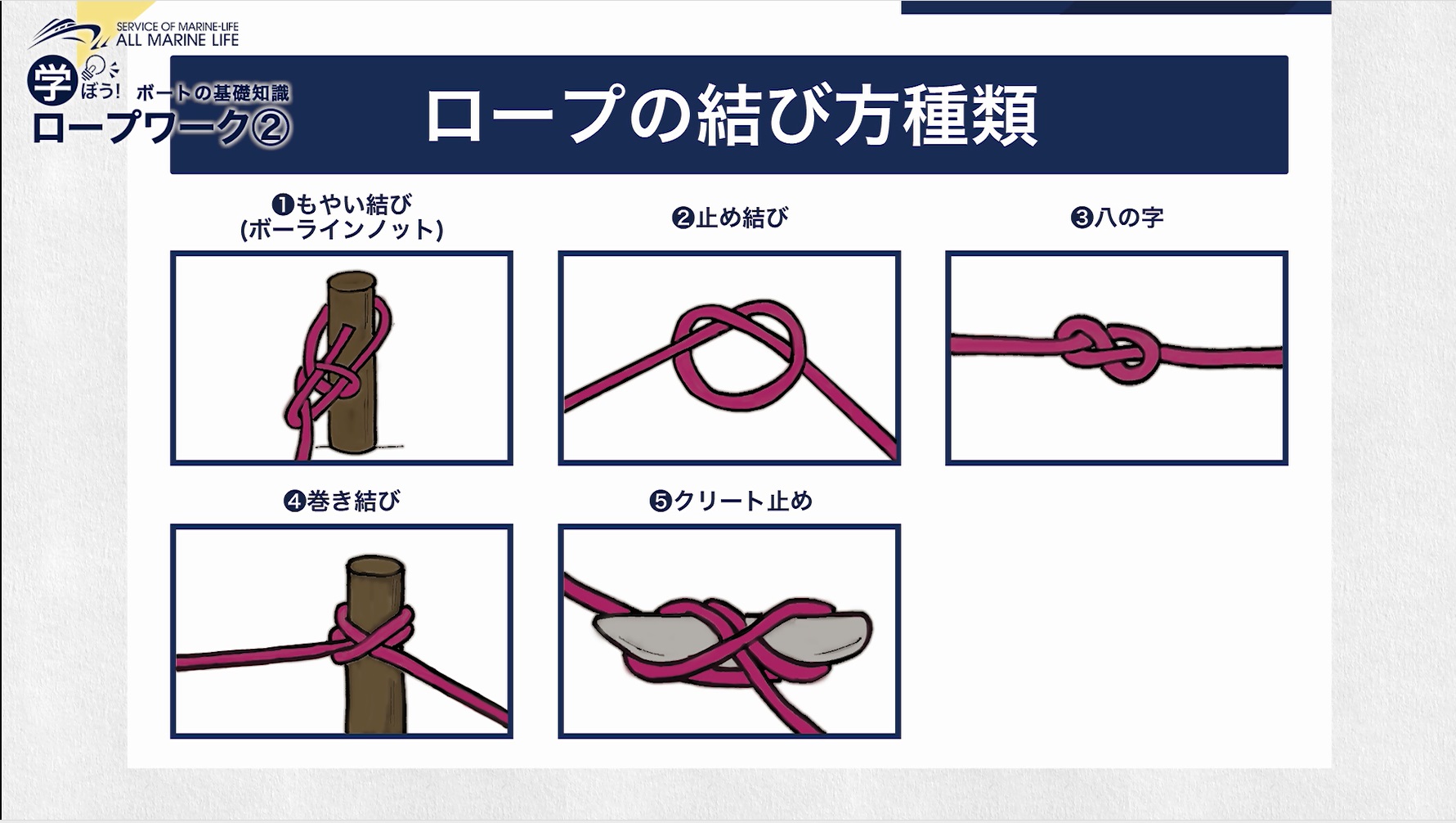 船舶免許にも役立つ様々なロープワーク。
