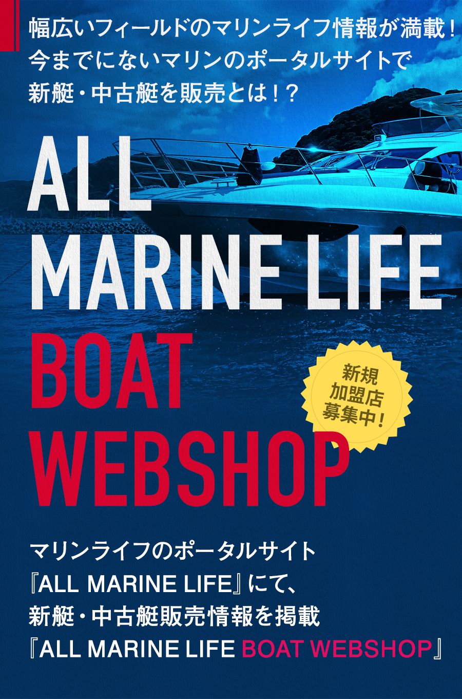 当サイトは加盟店様の販売する新艇・中古艇の販売情報を掲載するもので、実際に販売や購入手続きを行うものではありません。